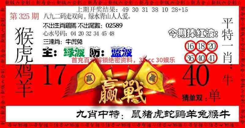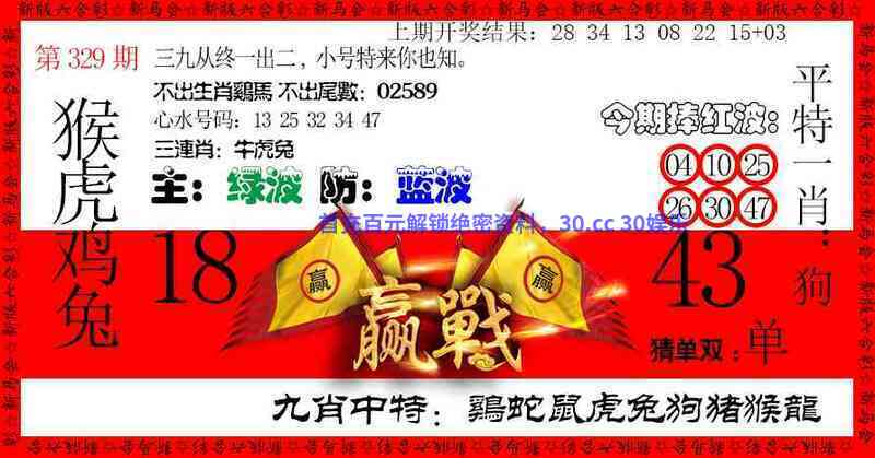 325期:九肖【鸡龙牛马鼠猪兔猴】开:虎04中